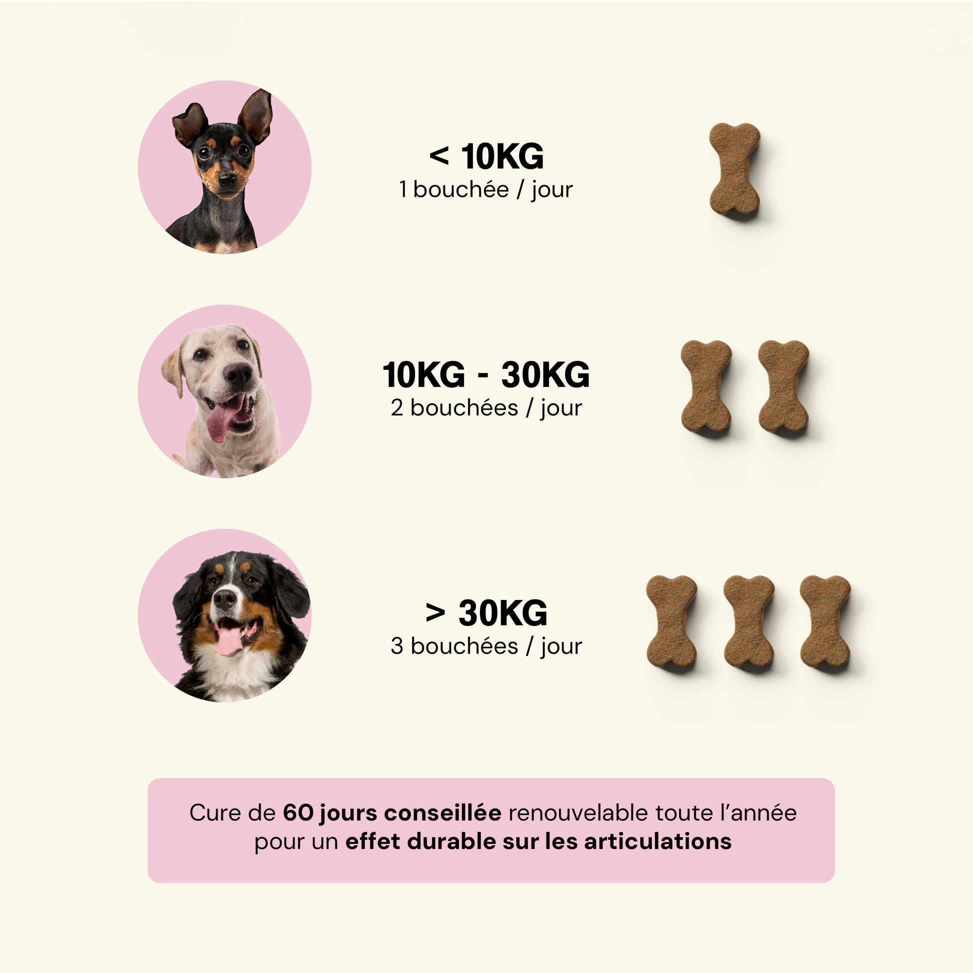 Apaise, nourrit et protège les articulations, tout en préservant le confort et la vitalité de votre compagnon à quatre pattes.