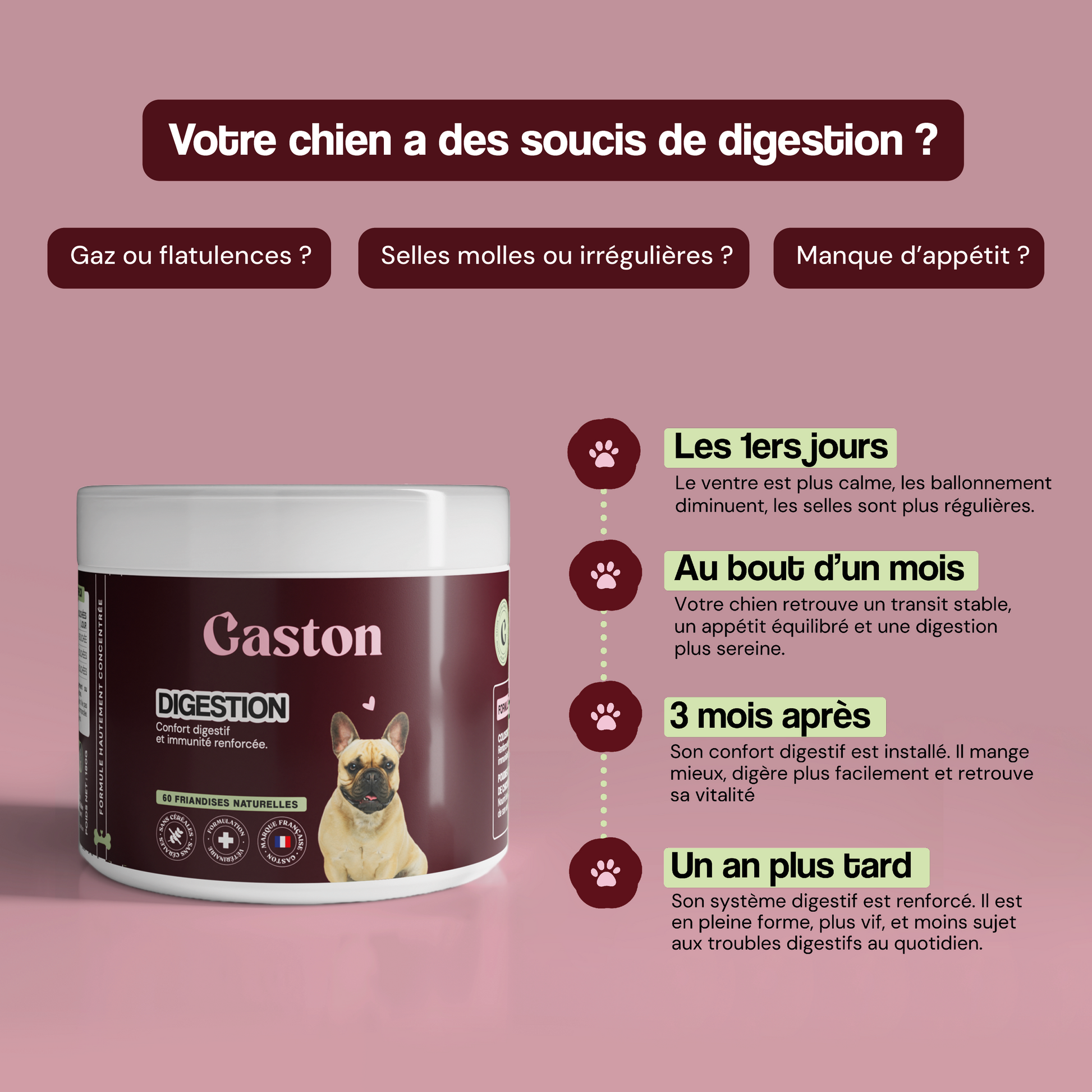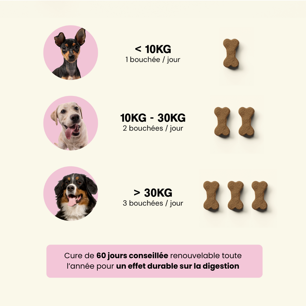 Votre chien retrouve un transit stable, un appetit équilibré et une digestion plus sereine.